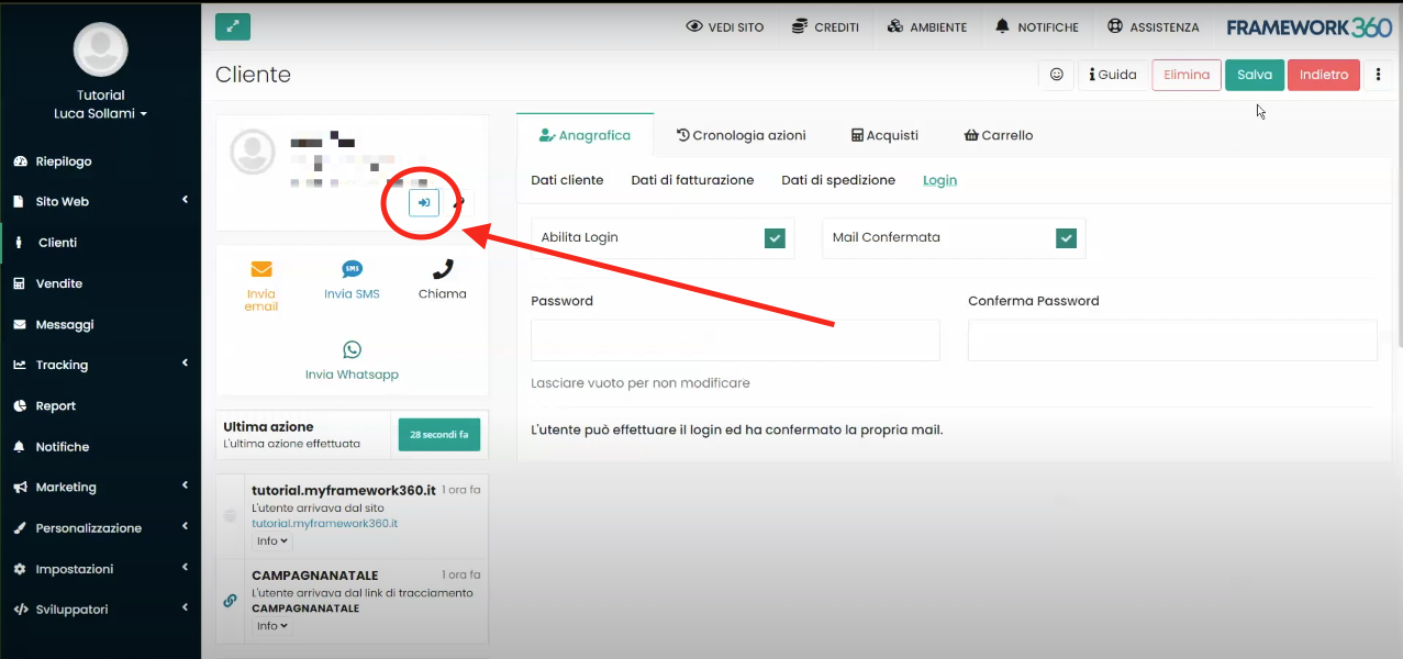Another operation that Framework360 allows us to perform below the Login area is to change our customer's password through the entries Password and Confirm Password.