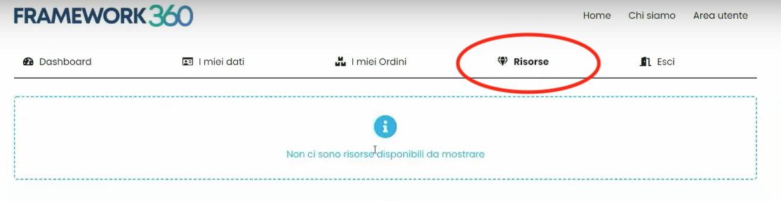 By clicking on the User Area, after logging in, our visitor will find a new tab called Resources: