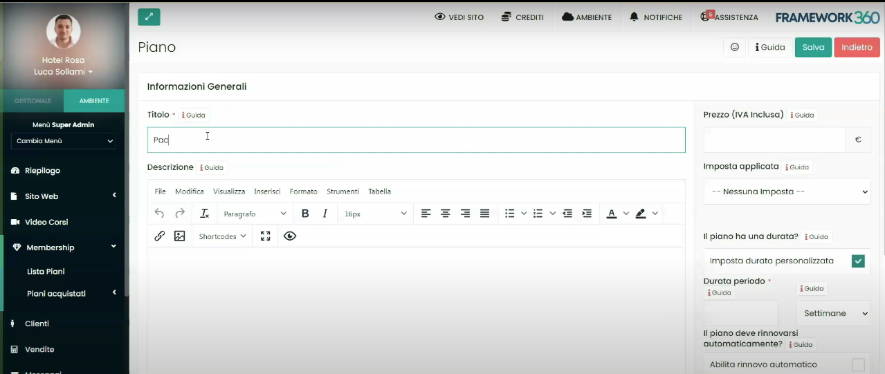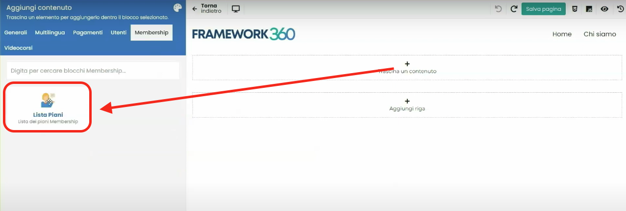 Once the page is created, we could also make it visible within the Main Menu present in the Header of the website, to do this we go to the voice Menu of the main menu of Framework360, once inside we go to modify the Main Menu and we proceed to insert into it the newly created page where the various packages of our video courses are present.