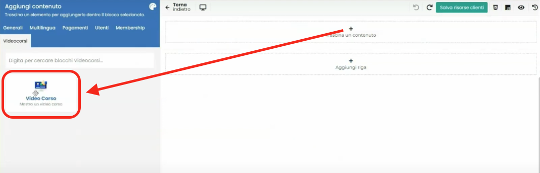 Within this tab, resources that we decide to make available will appear. In our case, we should make the purchased video course available. To make the video course available, let's go back again inside the submenu of the main menu Client Resources and let's click on the top right button Add to add our video as a resource. At this point, we will be faced with the following screen: