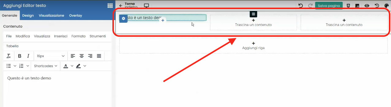 To transfer the block within the page, simply drag it from the visual builder into the row or column. The rows are spaces we create within the page through which we can arrange content on the page.