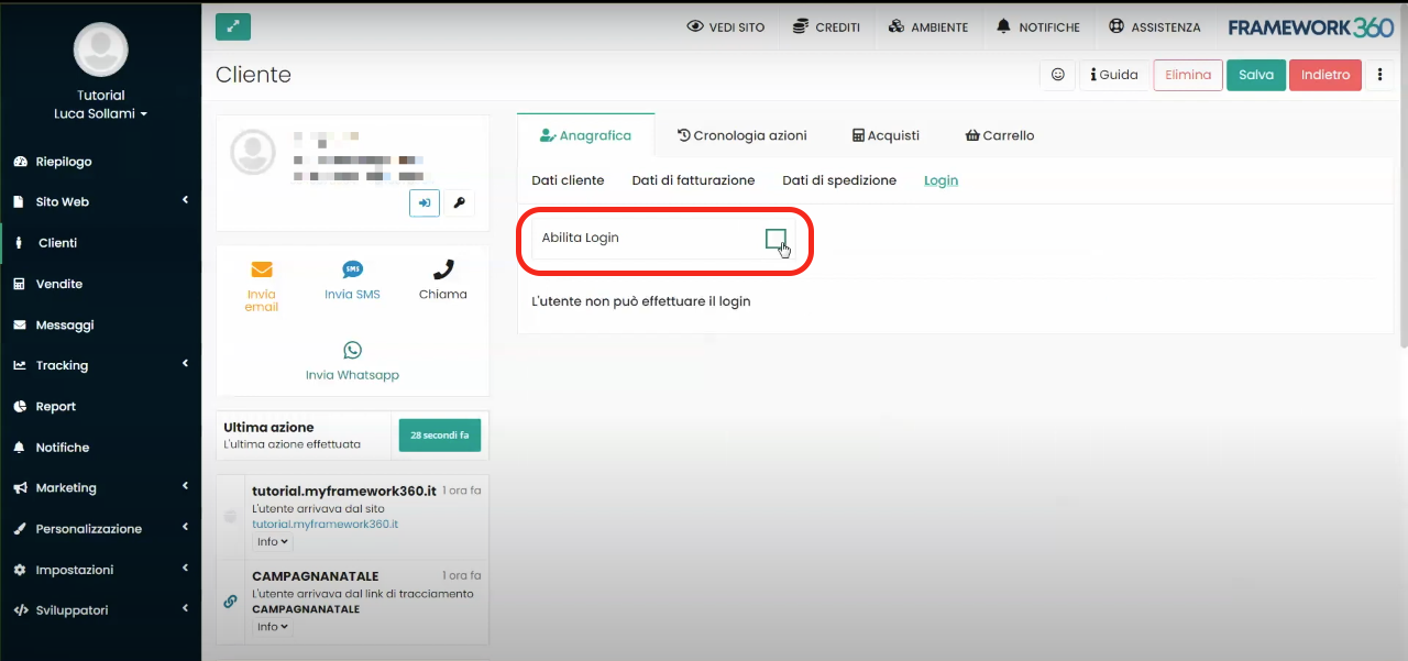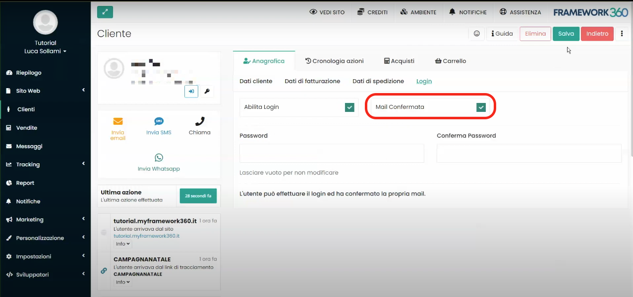 Finally, still inside the Login tab, we must enter the password through which our customer will be able to access their personal area.