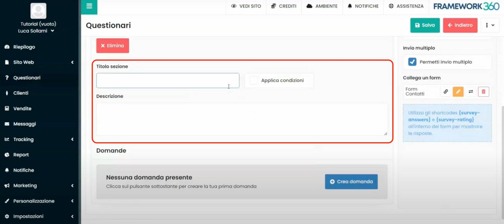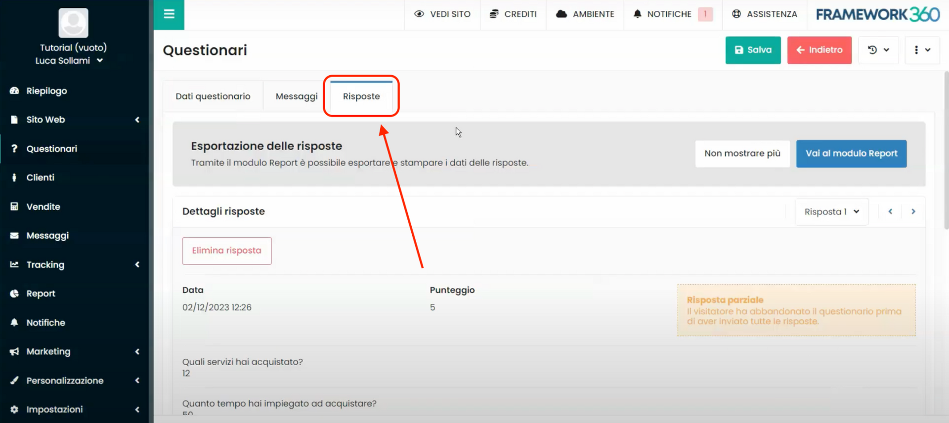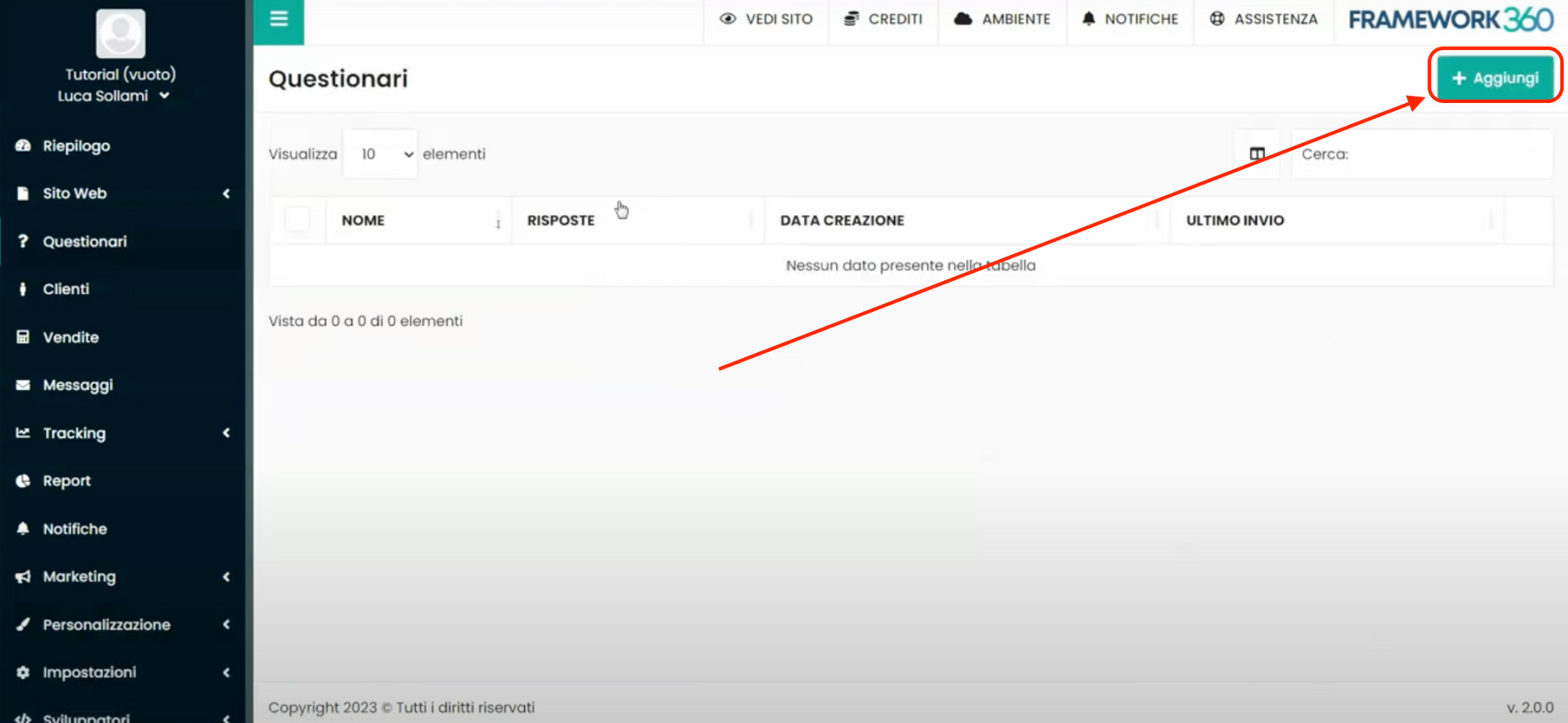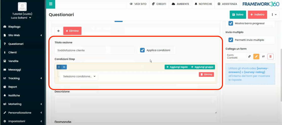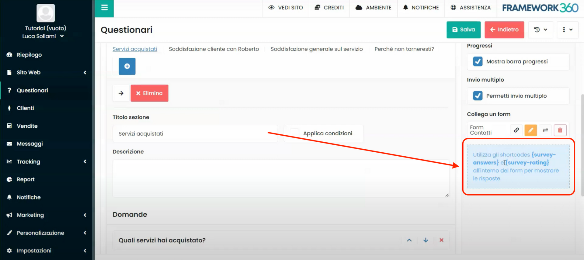 Inside this tutorial we will see how to create a questionnaire or a survey with Framework360, to be sent to our customers to find out, for example, their level of satisfaction during the purchase of our services or products on our website or in the company.
