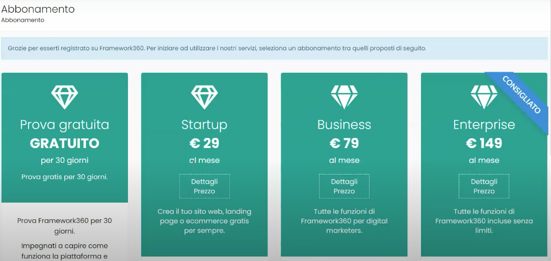 I should specify that all plans include all functionalities of Framework360, with the difference being in the scaling of resources; for example, the number of Leads in the Enterprise plan is 5,000, whereas it's 50,000 in Business and finally, 10,000 in Start up.