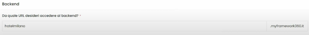 Continuing with the previous example, where the site's name was hotelmilano, the backend domain will be hotelmilano.myframework360.it.
